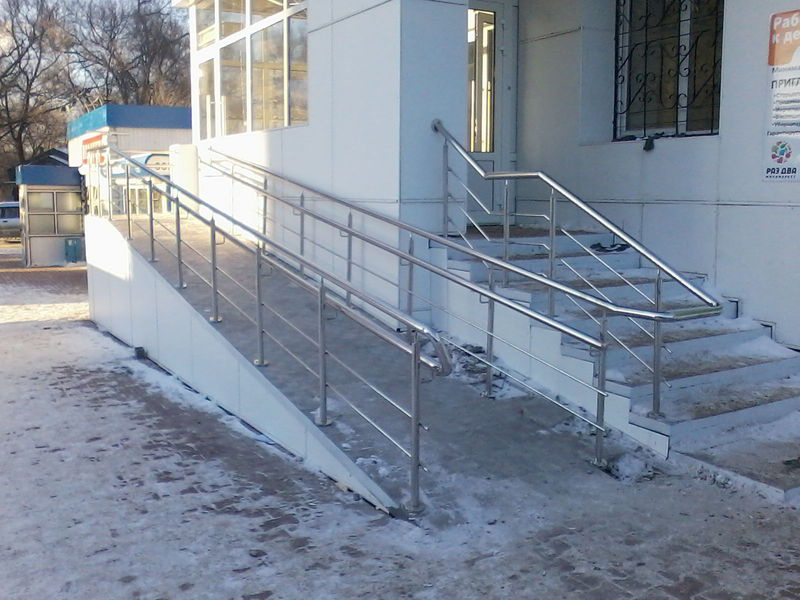 Пандус, необходимый элемент входной группы, практически на любом объекте социальной инфраструктуры. Поэтому, если ваша лестница оснащена пандусной дорожкой, то и ограждения должны соответствовать стандартам обеспечивая комфортный подъем инвалидам и посетителям с маленькими детьми в колясках. Перейти в раздел Ограждения для пандусов
