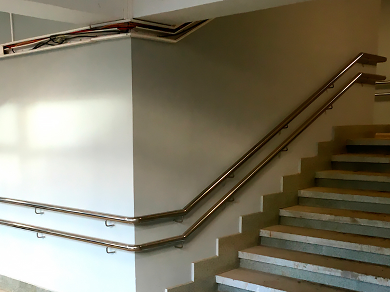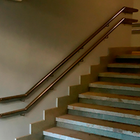 Для повышения удобства и комфортности подвальных лестниц, а также в местах, где использование ограждения на стойках не целесообразно, применяются пристенные поручни с креплением к вертикальной поверхности (обычно к стене). Пристенный поручень получил свою популярность благодаря относительно дешевой цене и высокой скорости изготовления. Перейти в раздел Пристенные